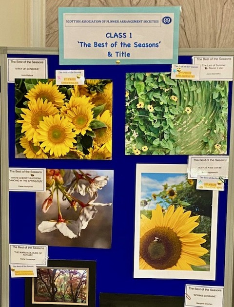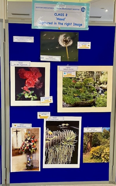 I would like to take this opportunity to thank all our flower club members who participated in this year’s Photography Competition 2025. A super total of 42 super photographs were on display at SAFAS’s final Council Meeting and AGM of the year. Judged by Mr Gary McLaughlin, Professional Photographer, Ayrshire who commented on the high standard of interpretations of both titles Class 1. ‘The Best of the Season’ to include a caption describing your photograph, Class 2. “Mood” Captured in the right Image. So apart from 1st 2nd and 3rd prizes being awarded several members received, Very Highly Commended. Highly Commended and Commended Awards.
